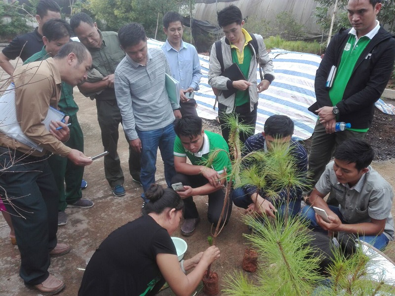根据2017年6月20日《中国云南省普洱市林业局与老挝丰沙里省农林厅会谈纪要》,2017年9月24-29日,普洱市林业局为老挝丰沙里省农林厅有关林业人员进行林业技术培训,9月26日上午,学员到普洱市林业科学研究所实验基地学习交流思茅松培育技术。普洱市林科所唐红燕高级工程师为学员详细介绍了思茅松扦插苗培育、思茅松嫁接苗培育的关键技术,并进行了现场示范和交流。学习交流过程中学员老方技术人员态度认真、发问积极、气氛活跃,专家释疑耐心细致、答疑释惑,让学员们较好地了解和掌握了思茅松扦插苗培育及思茅松嫁接苗培育技术,并就生产实际中的一些技术问题与专家进行了深入交流讨论,现场学习交流取得了良好效果。通过此次学习交流为"思茅松容器嫁接苗培育及造林技术推广示范"项目的成果推广和辐射带动起到了积极作用,积极推进了中老两国在林业实用技术方面的学习与交流。