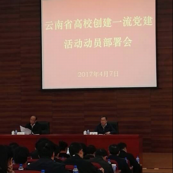 4月7日上午,云南省高校创建一流党建活动动员部署会在云南大学呈贡校区外国语学院多功能厅召开。我校党委书记牛定柱,校长马洪军,组织部副部长、机关党总支书记王洪参加会议。